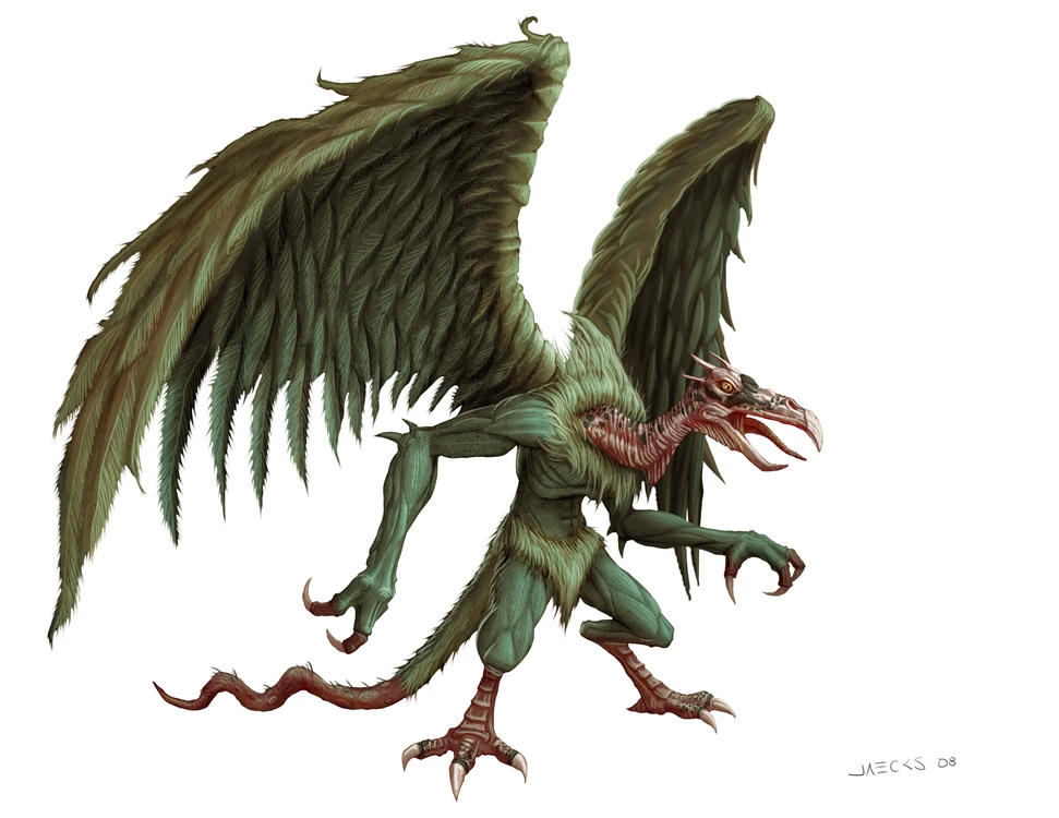 Profane champions of the Abyss, vrocks embody all the rage, hatred, and violence of that despicable realm. As ravenous and grotesquely opportunistic as the scavengers they resemble, vrocks delight in bloodshed, relishing the sounds and sensations of ripping the still-pulsing entrails from a living husk.