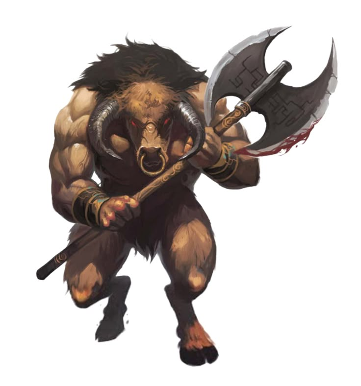 Minotaurs might also be found in the employ of a more powerful monster or evil creature, serving it so long as they can still hunt and dine as they please. Usually, this means guarding some powerful object or valuable location, but it can also be a sort of mercenary work, hunting down the foes of its master.